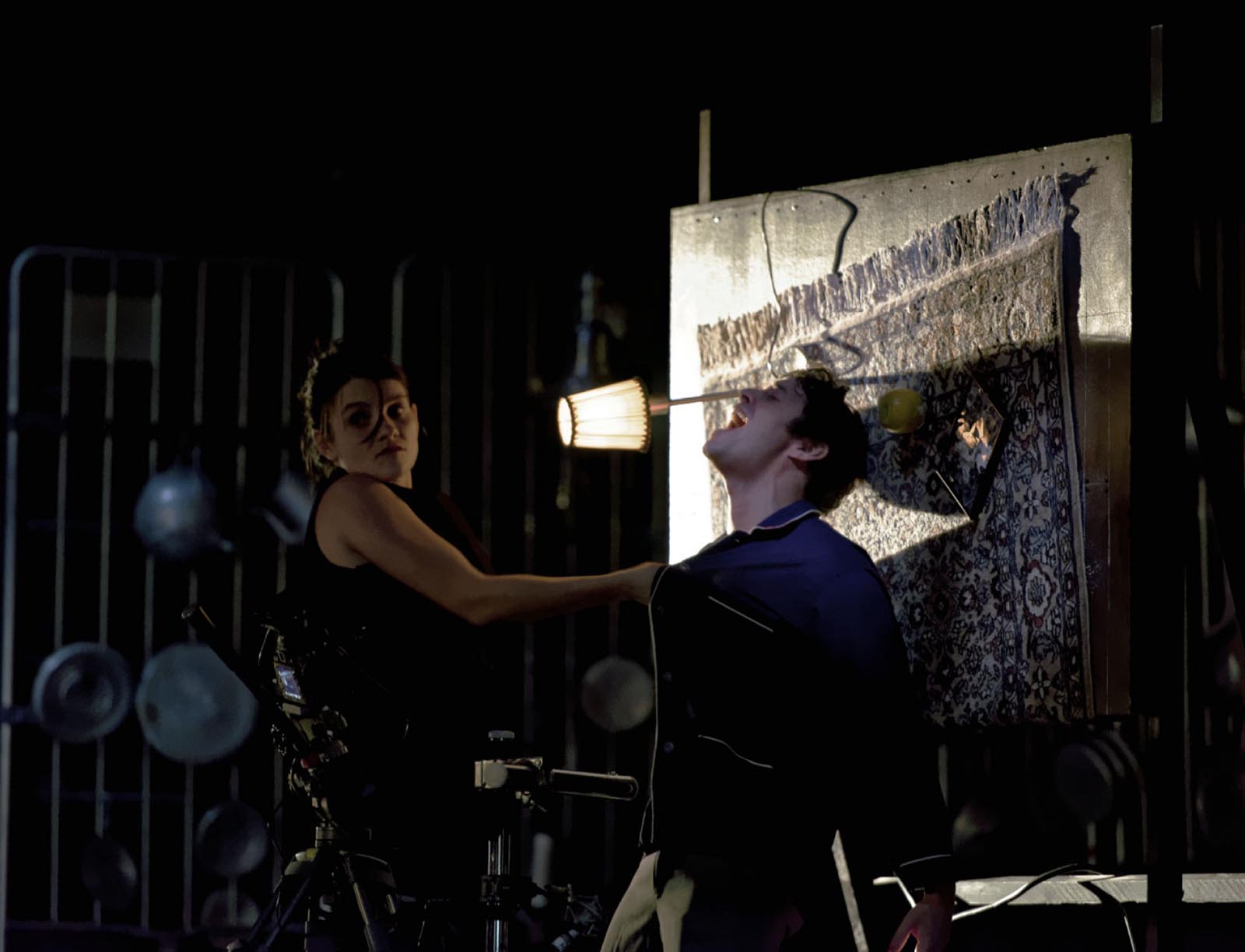 L'audience est séparée en deux groupes égaux et voit alternativement le tournage dans la première salle et le film dans la deuxième salle. A l'entracte, les spectateurs changent de salle. Et nous refaisons la performance...