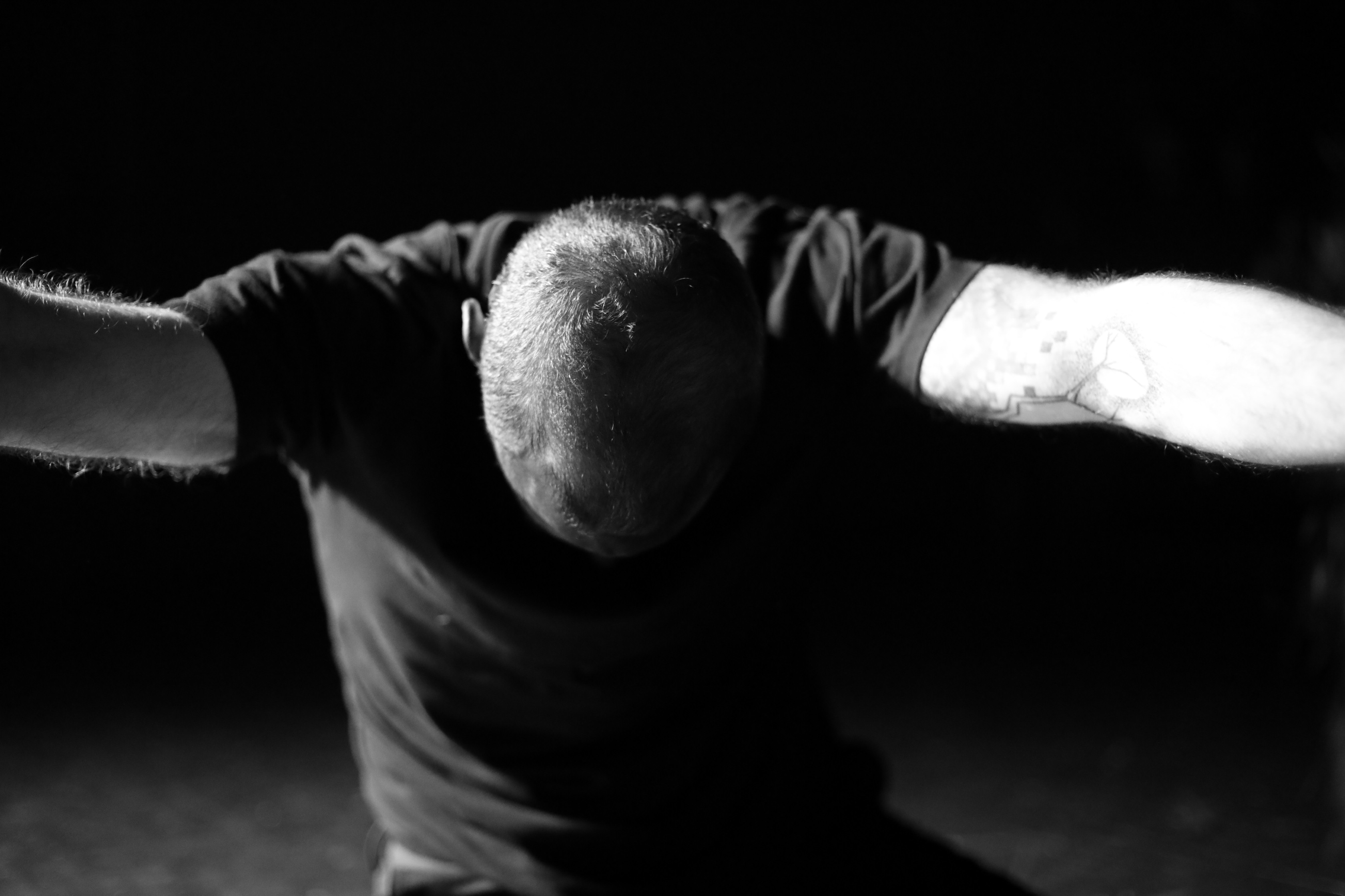 « MORITURI (créer est un combat) est un solo, qui tisse et télescope le corps en mouvement, le discours politique, les monuments aux morts et leurs figures, la photographie en direct et la musique noise.