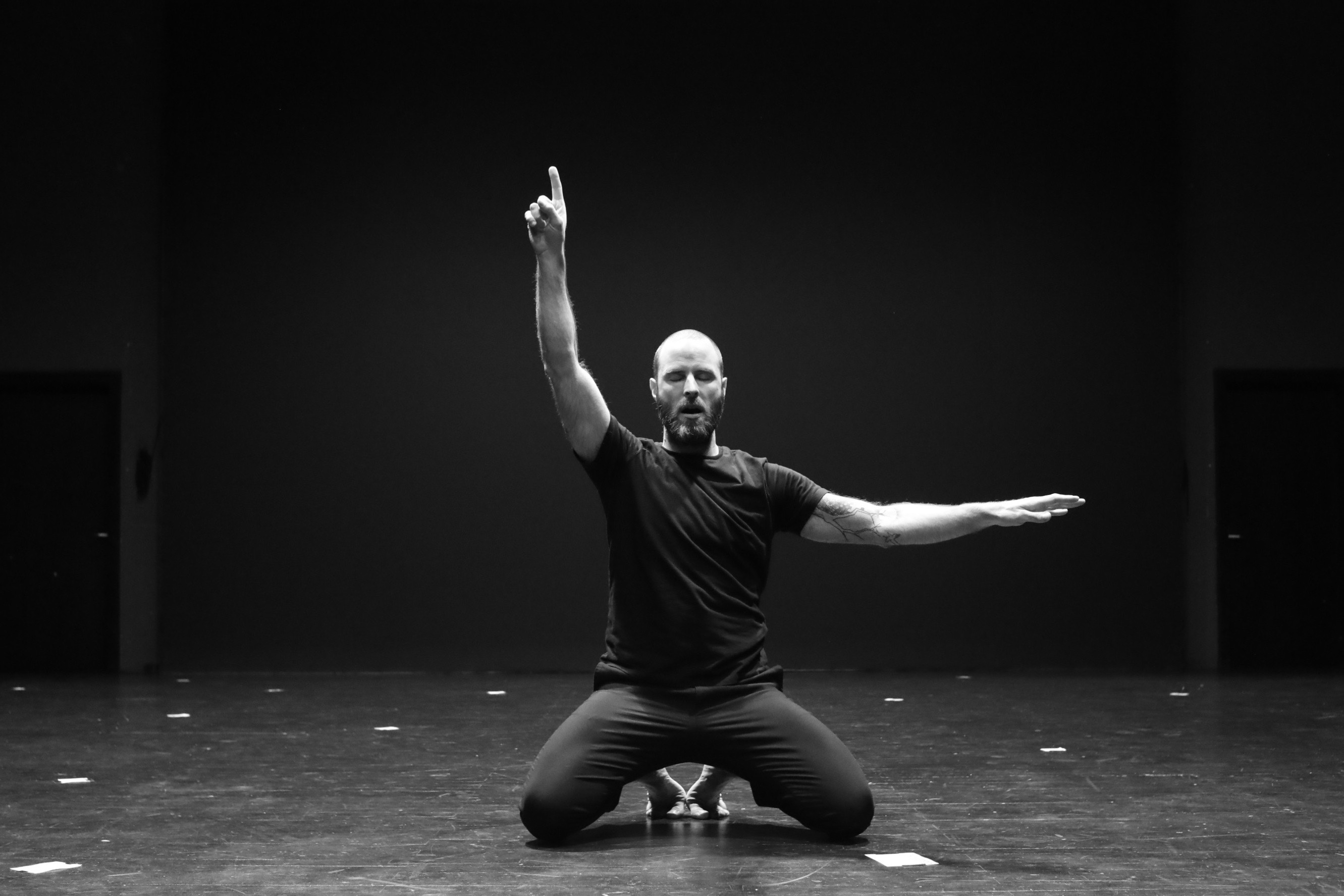Après avoir créé récemment, sur des explorations similaires, une pièce pour 8 interprètes (Morituri ou les Oies Sauvages), ce travail en solo est l’occasion de naviguer au plus près d’une expression, une position et une mobilité personnelles.